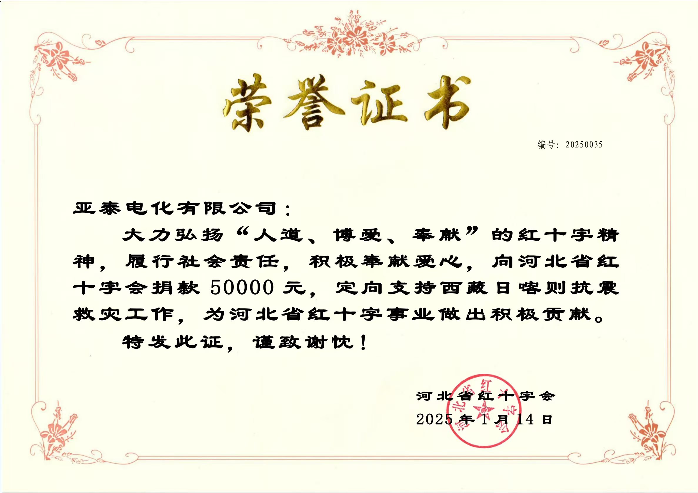 2025年1月7日,西藏日喀則地區(qū)遭受6.8級地震重創(chuàng),這一消息迅速傳遍全國,牽動了無數(shù)國人的心。亞泰公司全體員工深感其痛,秉持著“一方有難、八方支援”的精神,迅速響應(yīng)。作為一家有責(zé)任感、有擔(dān)當?shù)钠髽I(yè),我們深知,向受災(zāi)同胞伸出援手,是我們義不容辭的責(zé)任。